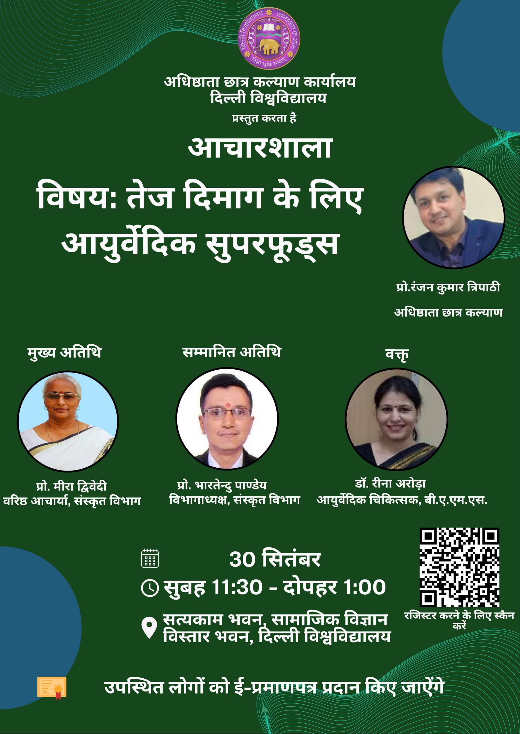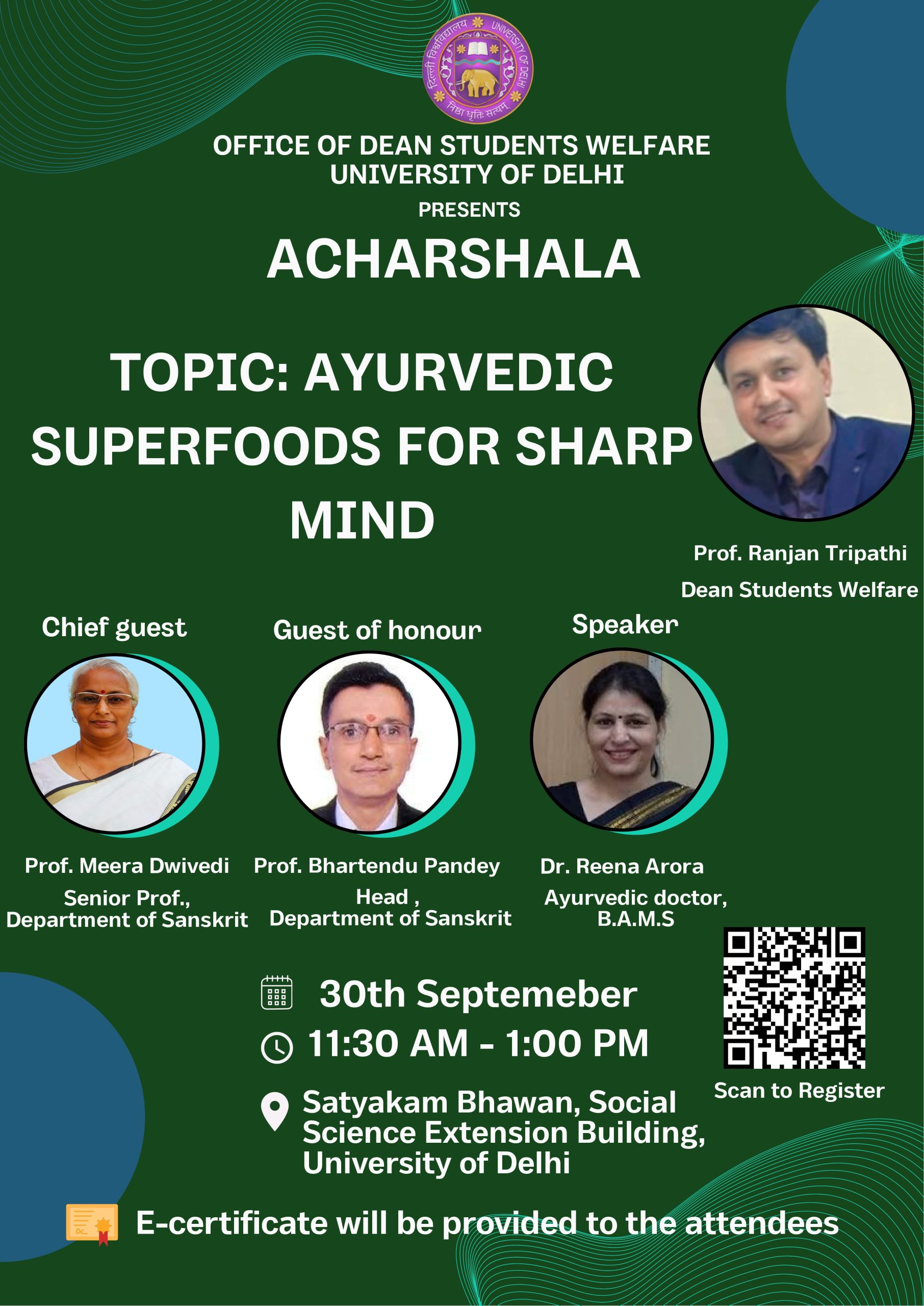 DU’s Dean Students’ Welfare hosts ‘Ayurvedic Superfoods for Sharp Mind’ workshop on 30th September.