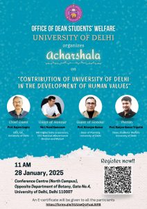 Ācāraśālā represents a significant step towards integrating academics, administration, and personal development at the University of Delhi. By participating in this innovative series, students will be better equipped to contribute to the university’s aspirations and the broader goal of a self-reliant and developed India. This initiative not only aims to foster academic excellence but also to nurture well-rounded, responsible, and empowered individuals ready to lead and inspire.